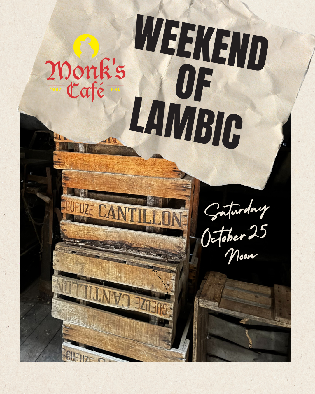 Created to celebrate Monk’s 25th Anniversary in 2022. Exclusive to Monk’s. This special Gueuze was created by 5 generations of the Cantillon/Van Roy family and my family (my daughter Isabel assisted in this blend). A unique blend of 4yr old, 3yr old and 2yr old barrel-aged lambics. Soft, pillowy carbonation. Cantillon house character with a bit more oak notes, citrus and a bit of stone fruit (it’s not fruited) in the aroma and taste. 6% abv