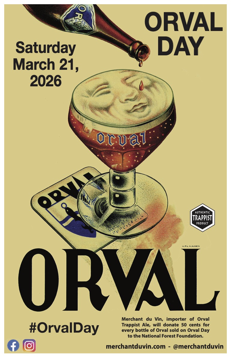 In the month of March, Orval importer Merchant du Vin donates $0.50 from every bottle sold in the US to the National Forests Foundation. It's good to be good. Join us from 11:30am until Midnight on March 21.